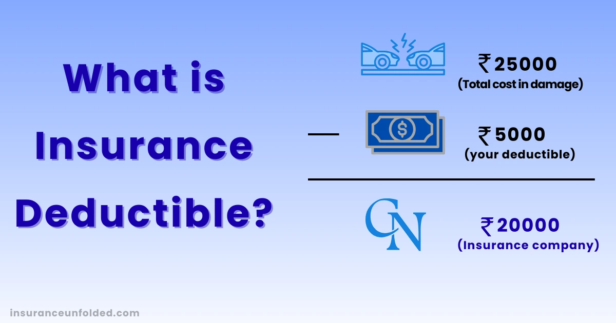 - Car Insurance: Deductible ₹7,500. The repair cost is ₹50,000. You will pay ₹7,500, and the insurance will pay ₹42,500.